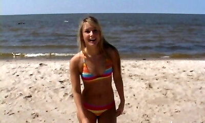 Exibitionist damsel getting naked on the beach