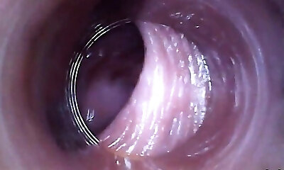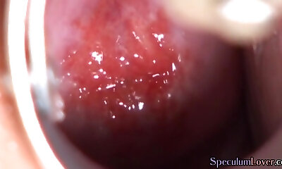 Lovely teenie is gaping pink vagina in close up and having ejaculation
