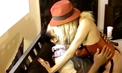 dampfende dame im strumpf streichelt sein männliches cowgirl