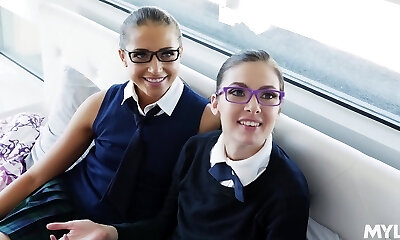 erregende brünetten sind ziemlich gesegnet, ihre glatt rasierten fetzen aufzudecken