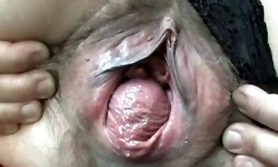 fötzchen selbst faust. doppelte knöchel. haarige klaffende hure