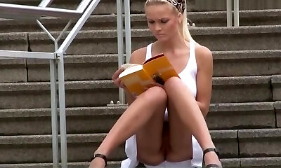 ehrfürchtig college girl platinum-blonde upskirt film