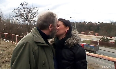 Jaw-dropping Czech pornstar gets fucked by a mischievous old chap outdoors