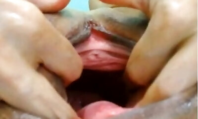 All-natural teen is gaping soft vulva in close range and having