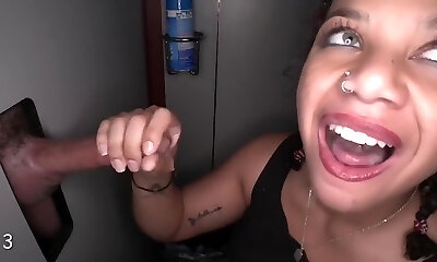 Glamorous ebony gets to stick that dick out of gloryhole