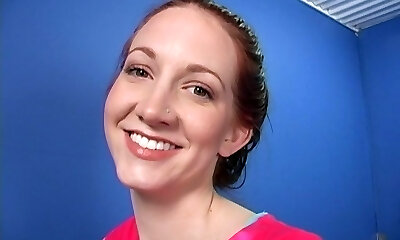 Ginger chick with red haired pussy Edyn Blair is having fun in the glory hole room