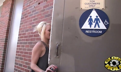 Cum eating at gloryhole for interracial bitch
