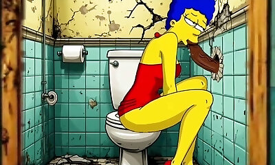 The Simpsons Pornography Parody: Sexy Cheating Wife Marge Lets a Black Dude Smash Her In The Public Toilet