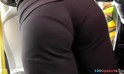 Obscene shameless platinum-blonde head brags of her bubble ass in yoga pants