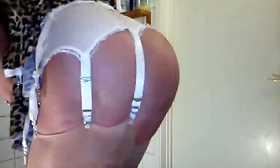 Gal shows off her camel toe in vintage undies - Erotic Solo