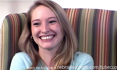 Good looking coed is damn proud of her small bosoms
