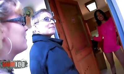 Amateur brunette massagist Lucie Q gets lures by old couple for FFM session