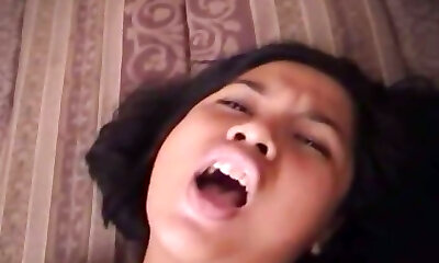 Gross Asian guy eats incredibly hairy pussy of his first promiscuous girlie