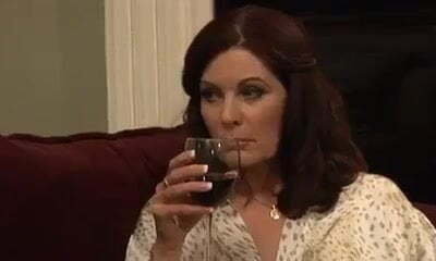 Mature lusty grey haired village tramp drains and sucks dick on straw in shed