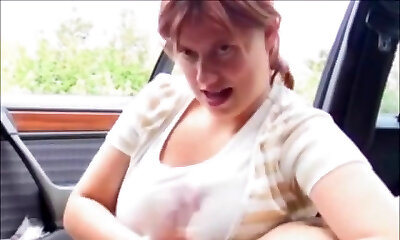 Chubby redhead public fucked in car by driving instructor