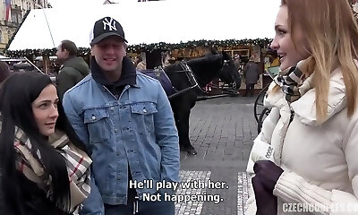 Normales deutsches Mädchen auf der Straße zum Orgy überredet