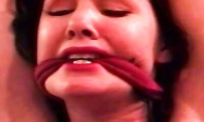 Big-titted cutie Whayes got wooden gag in her mouth got bounded by kinky master