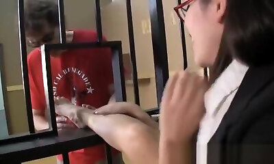 Mind-blowing officer gets her feet boned and jizzed at the police station